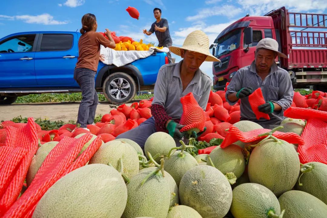 南湖的瓜农正在采摘哈密瓜。融媒体中心记者 李华 摄