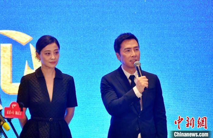 图为甄子丹(右)与梅婷亮相电影节新闻发布会。