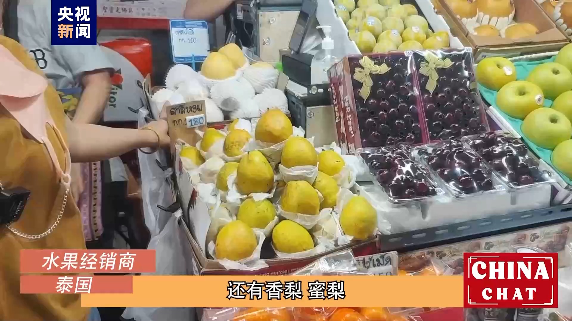 泰国水果经销商说,中国的大冬枣又甜又脆,很好吃。因为在泰国无法种植,只有从中国进口,因此卖得也很好。在泰国比较受欢迎的水果还有中国梨、中国的柿子。泰国的消费者说中国水果个大、品质好、价格也不贵,味道非常棒,泰国民众都喜欢购买。