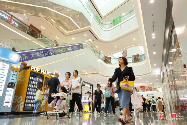 2023年10月1日,在位于重庆市沙坪坝区土主街道的融创茂,前来购物的顾客络绎不绝。(孙凯芳摄/光明图片)