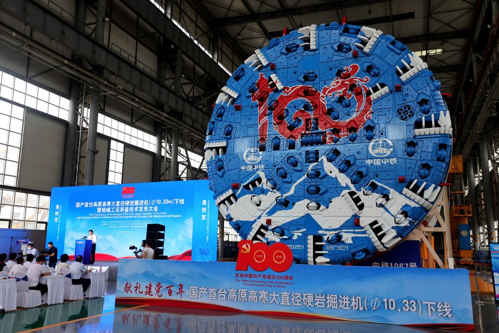 2021 年 6 月 17 日,首台国产高原高寒大直径硬岩掘进机在郑州下线(图片来源 :视觉中国)