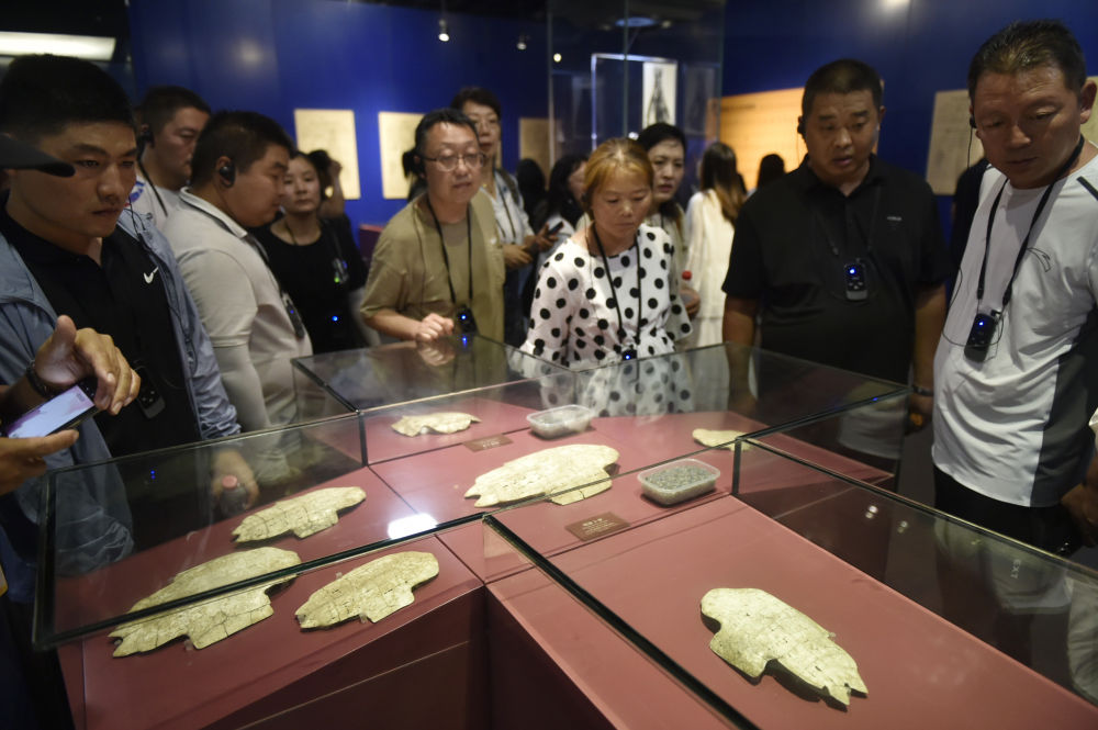 8 月 10 日,观众在位于河南省安阳市的殷墟博物馆参观 鲁鹏 / 摄
