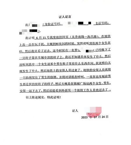 自小何的经历在网络上获得广泛关注后,陆续有几名网友自称事发当时位于车厢内。小何联系上其中两人,希望他们能为自己作证。其中一名目击者由于证言过程较为繁琐且担心暴露个人隐私放弃作证,但另一人作出了书面证言。