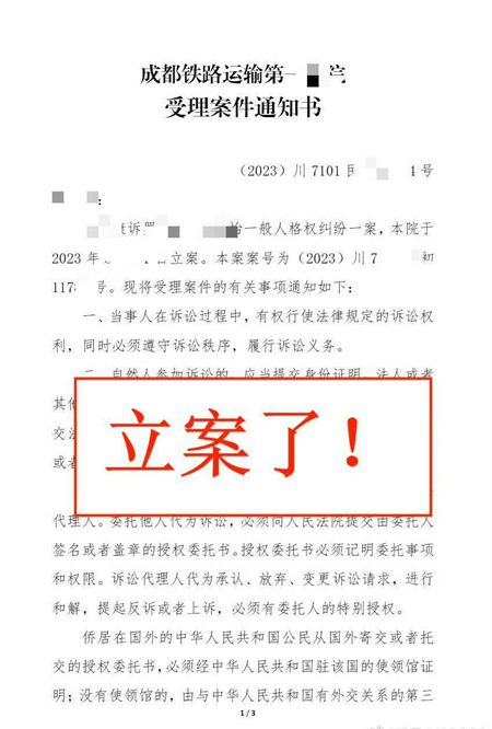 8月25日,这份补交的证人证言让小何收到了成都铁路运输第一法院的立案通知书,该院已经受理他与涉事女乘客的“一般人格权纠纷”案件。