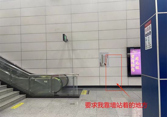 小何从成都地铁锦城广场站下车后,被要求站立等待的地方。