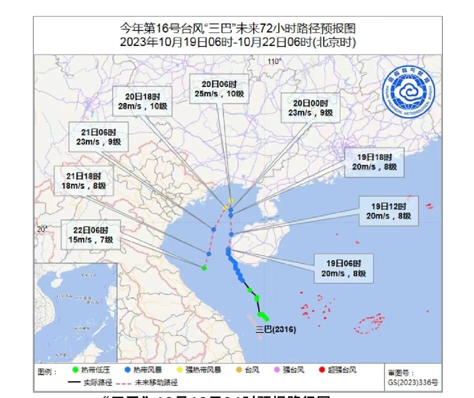 记者从海南省气象局获悉,南海热带低压已于18日下午加强为今年第16号台风“三巴”(热带风暴级),19日06时其中心位于海南省东方市近海,即将擦过或登陆海南东方一带沿海(18~20米/秒,热带风暴级)。