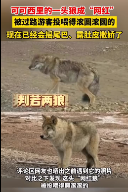 可可西里一头狼被投喂变胖成“网红”,网友开始担心……