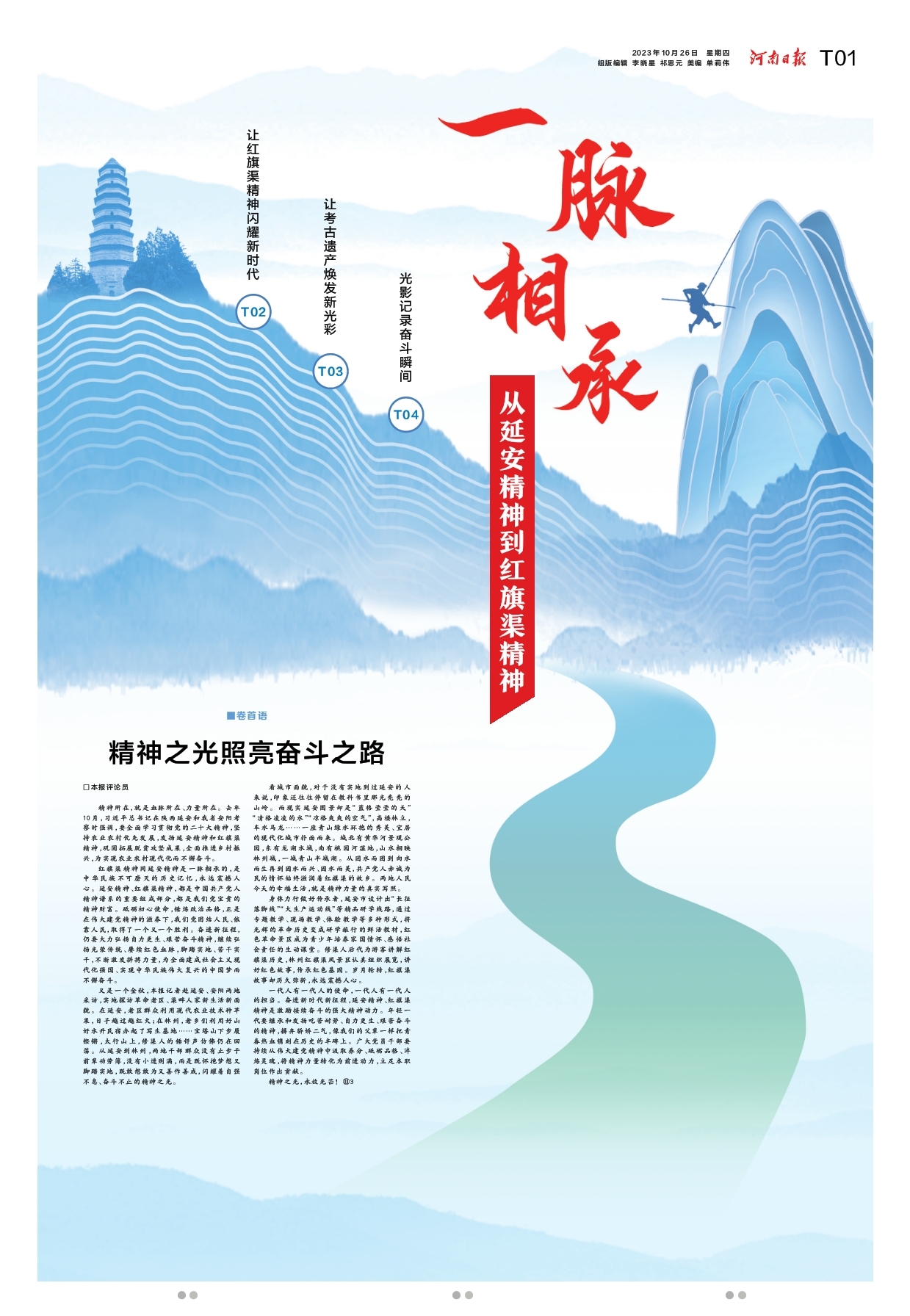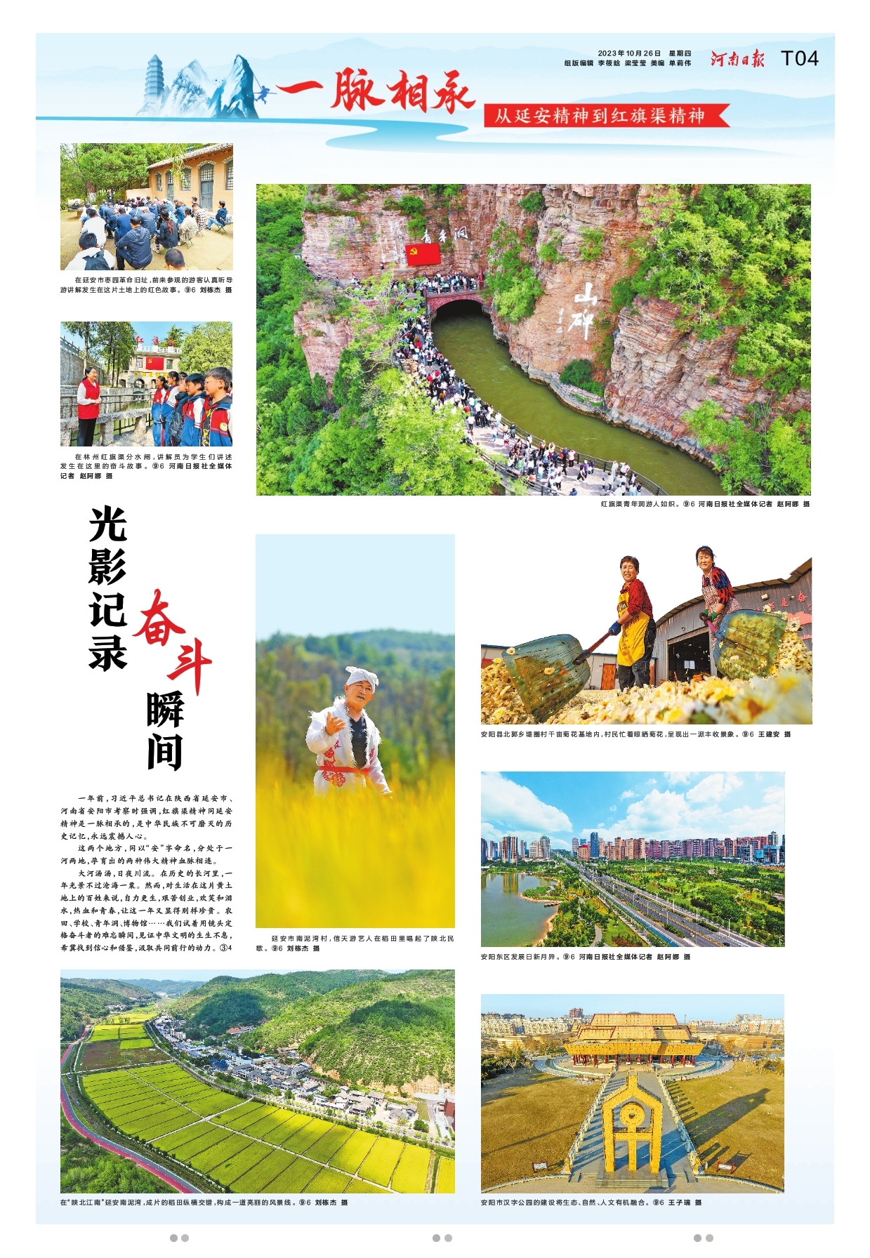 又是一个金秋,本报记者赴延安、安阳两地采访,实地探访革命老区、渠畔人家新生活新面貌。在延安,老区群众利用现代农业技术种苹果,日子越过越红火;在林州,老乡们利用好山好水开民宿办起了写生基地……宝塔山下步履铿锵,太行山上,修渠人的锤钎声仿佛仍在回荡。从延安到林州,两地干部群众没有止步于前辈功劳簿,没有小进则满,而是既怀抱梦想又脚踏实地,既敢想敢为又善作善成,闪耀着自强不息、奋斗不止的精神之光。