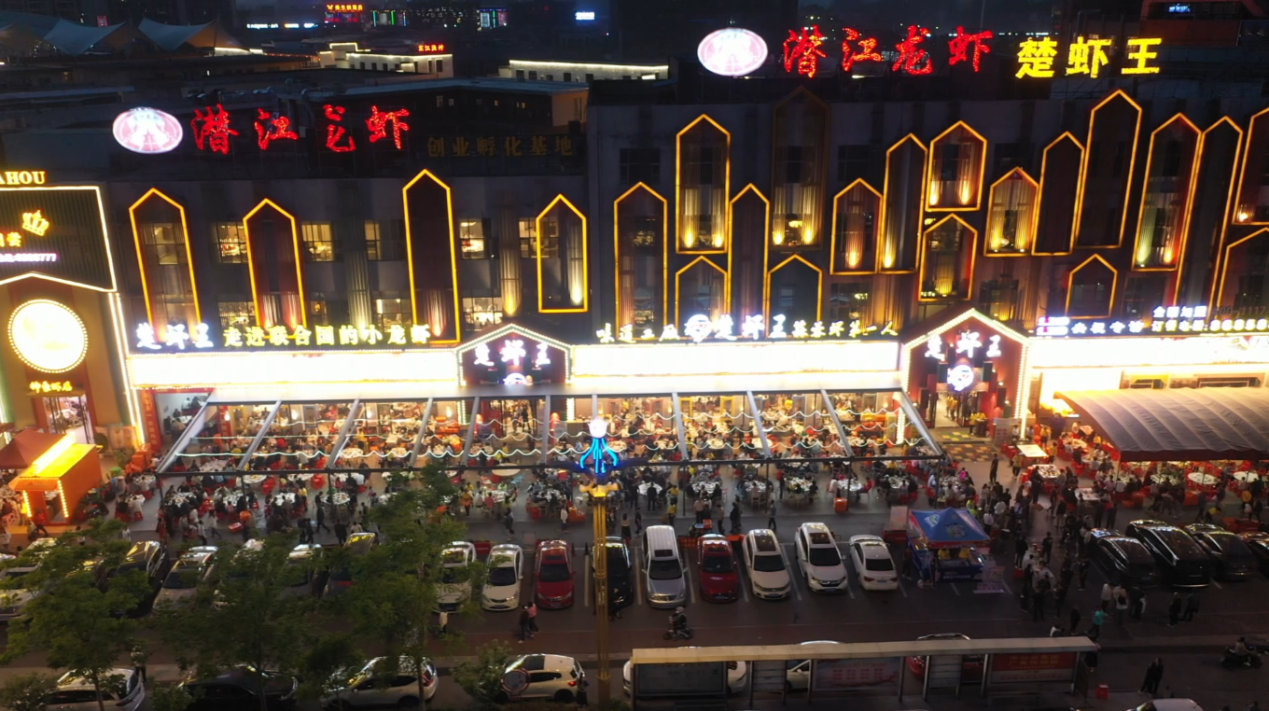晚上八点的潜江,是红色的。10月23日是周末,拥有30多家小龙虾网红餐饮店的潜江生态龙虾城,又迎来一波打卡高峰。