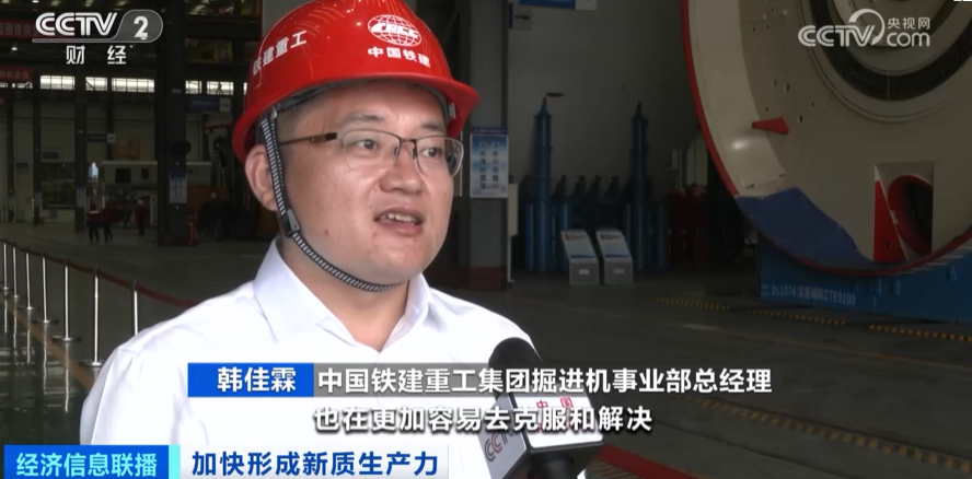 中国铁建重工集团掘进机事业部总经理 韩佳霖:我们现在平均每年盾构机产量在200多台,产品直径范围从0.5米到23米实现了全覆盖。地铁、铁路、公路、矿山、水利等,应用的行业越来越广。随着盾构机技术的积累和提升,现在工程中遇到的很多难题也更加容易克服和解决。