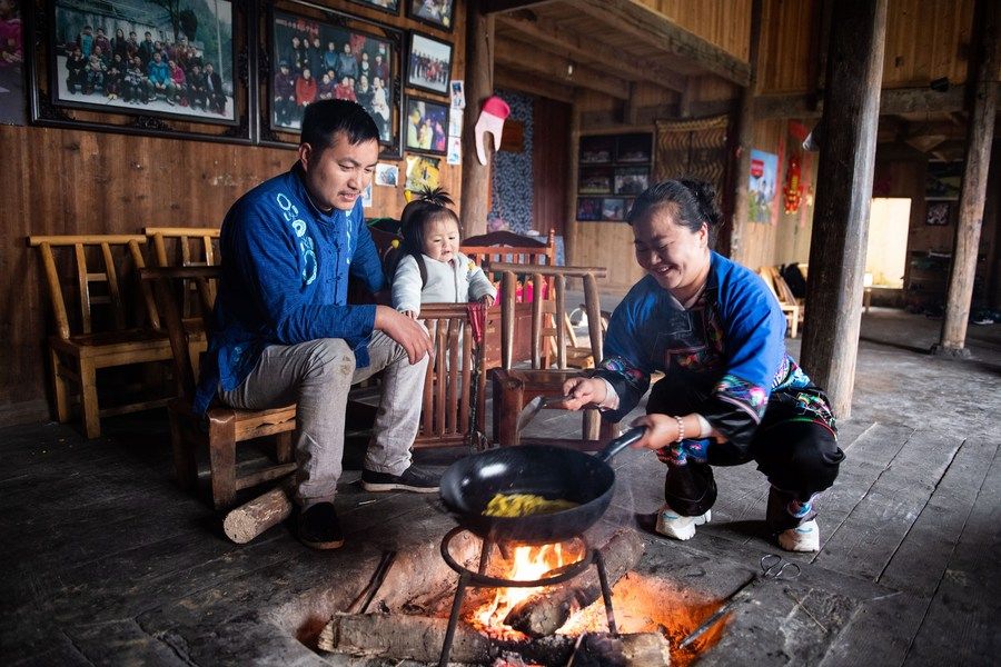 在湖南湘西十八洞村,龙先兰一家在做早餐(2021年4月16日摄)。新华社记者 陈思汗 摄