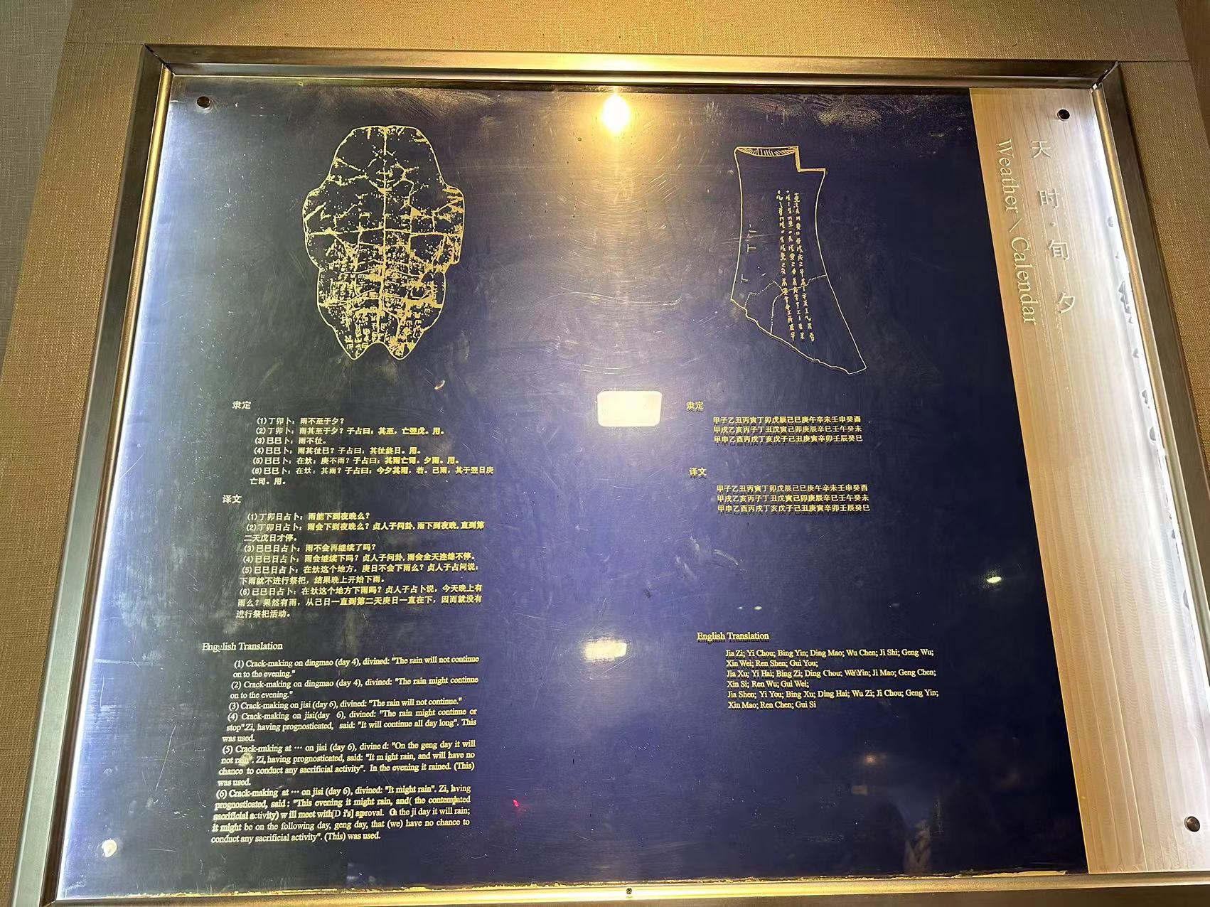 不止这一片。闫馨带记者来到一块展板前,她介绍,上面印的是一块占卜天气的甲骨片,卜辞为“子占曰:今昔其雨,若。己雨,其于翌日庚亡司。用。”