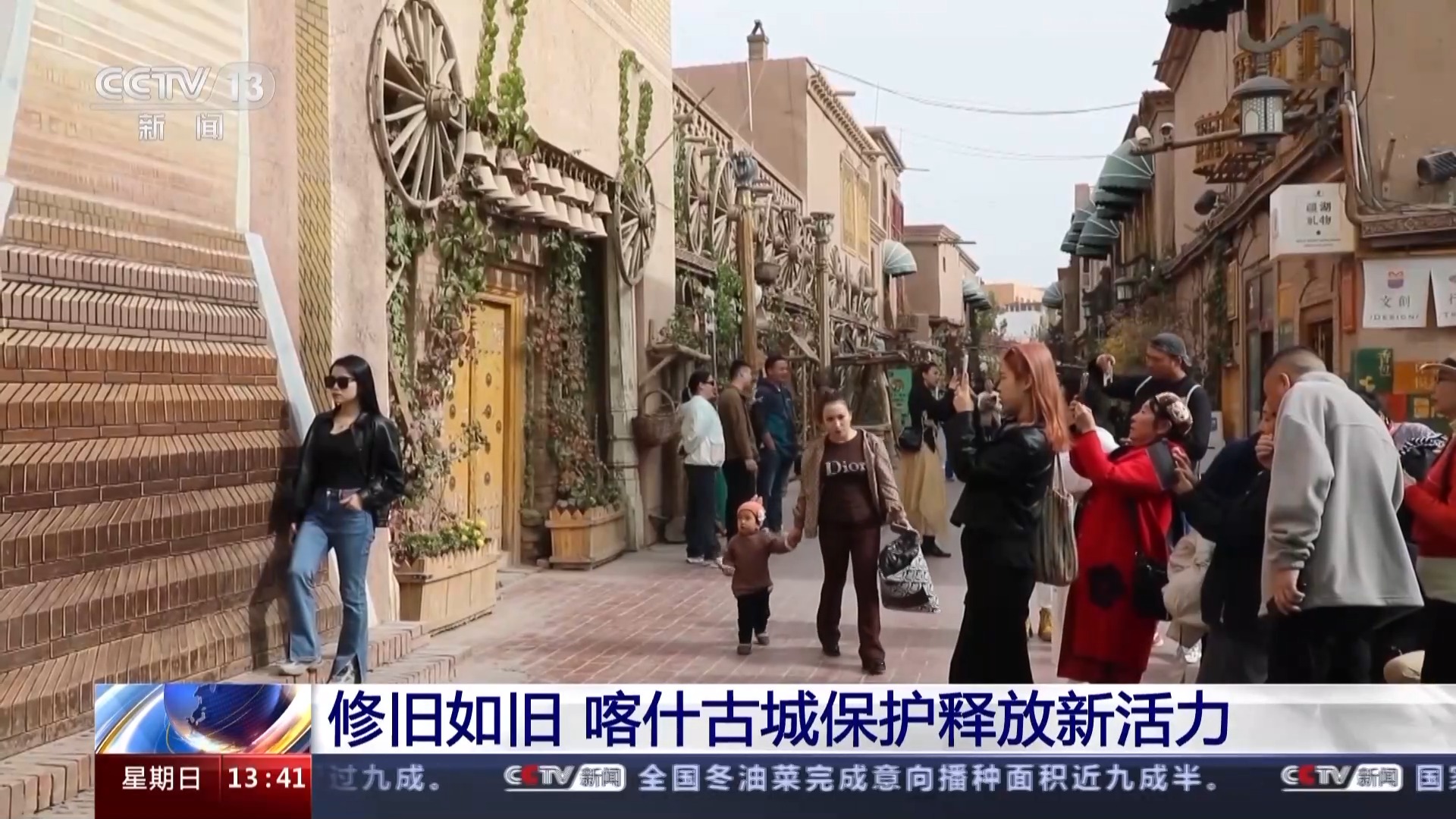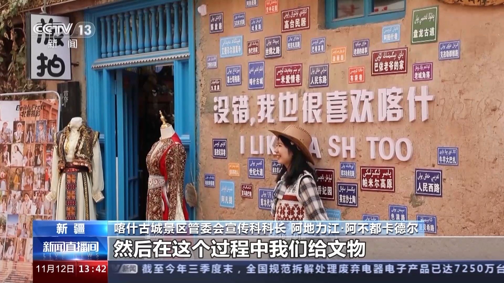喀什古城景区管委会宣传科科长 阿地力江·阿不都卡德尔:第一个就是住上好房子,第二个挂上金牌子,第三个过上好日子。在这个过程中,我们给古城里的一些优秀民居挂牌保护,也做了比较详细的工作。我们也在这个过程中,通过文旅融合,旅游加非遗、旅游加文物、旅游加古迹、旅游加体育这种模式,开展游客项目,也给游客提供体验项目,让他们真正领略到古城的魅力所在。