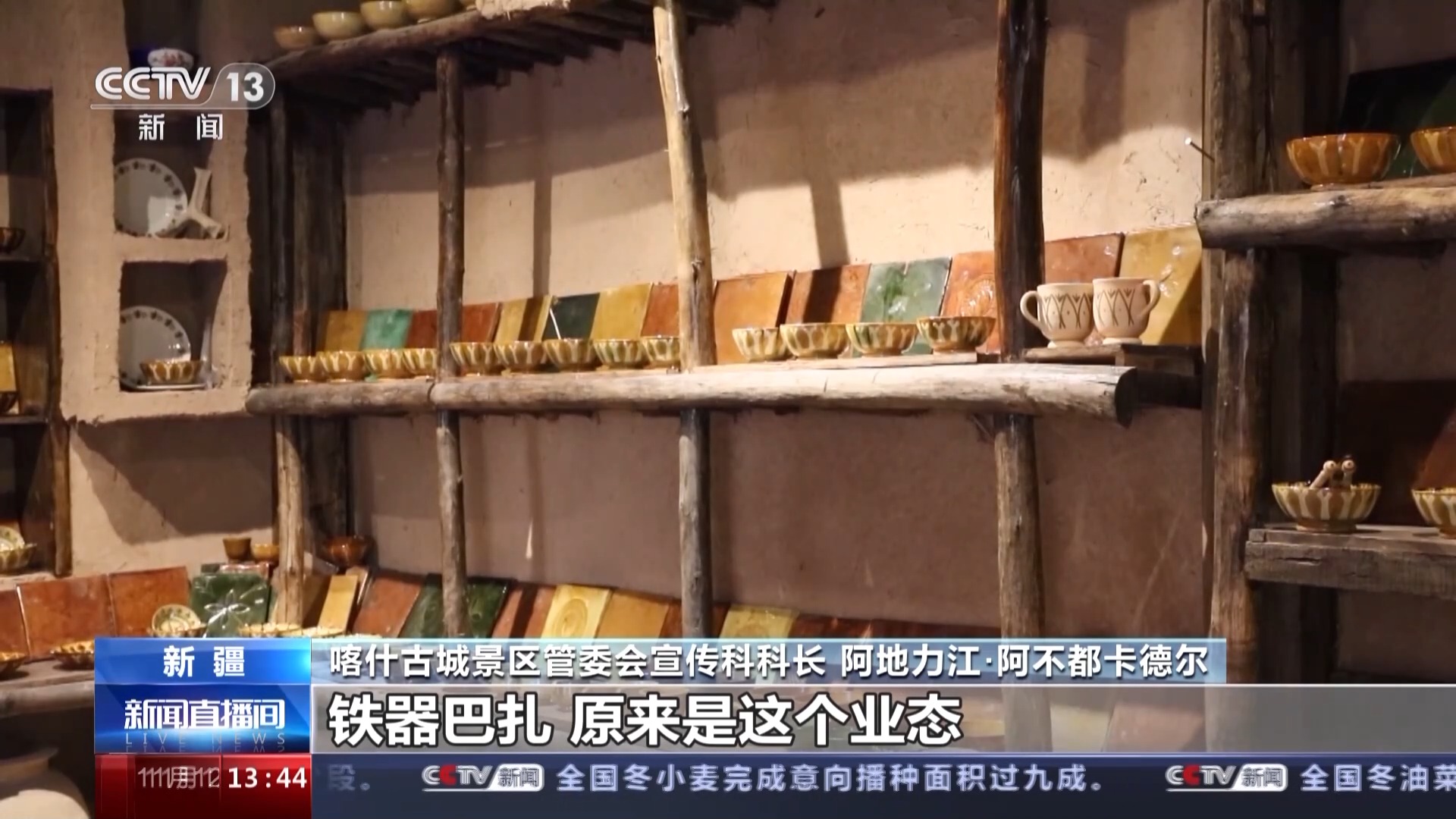 喀什古城景区管委会宣传科科长 阿地力江·阿不都卡德尔:我们的土陶巴扎、木器巴扎、铁器巴扎,原来是这个业态,现在也是这个业态。除了这个之外,原来所有的巷道修旧如旧,也做到了很精致,现在这个古城就是按照原来历史上留下来的,以修旧如旧、保护风貌的方式改造的。