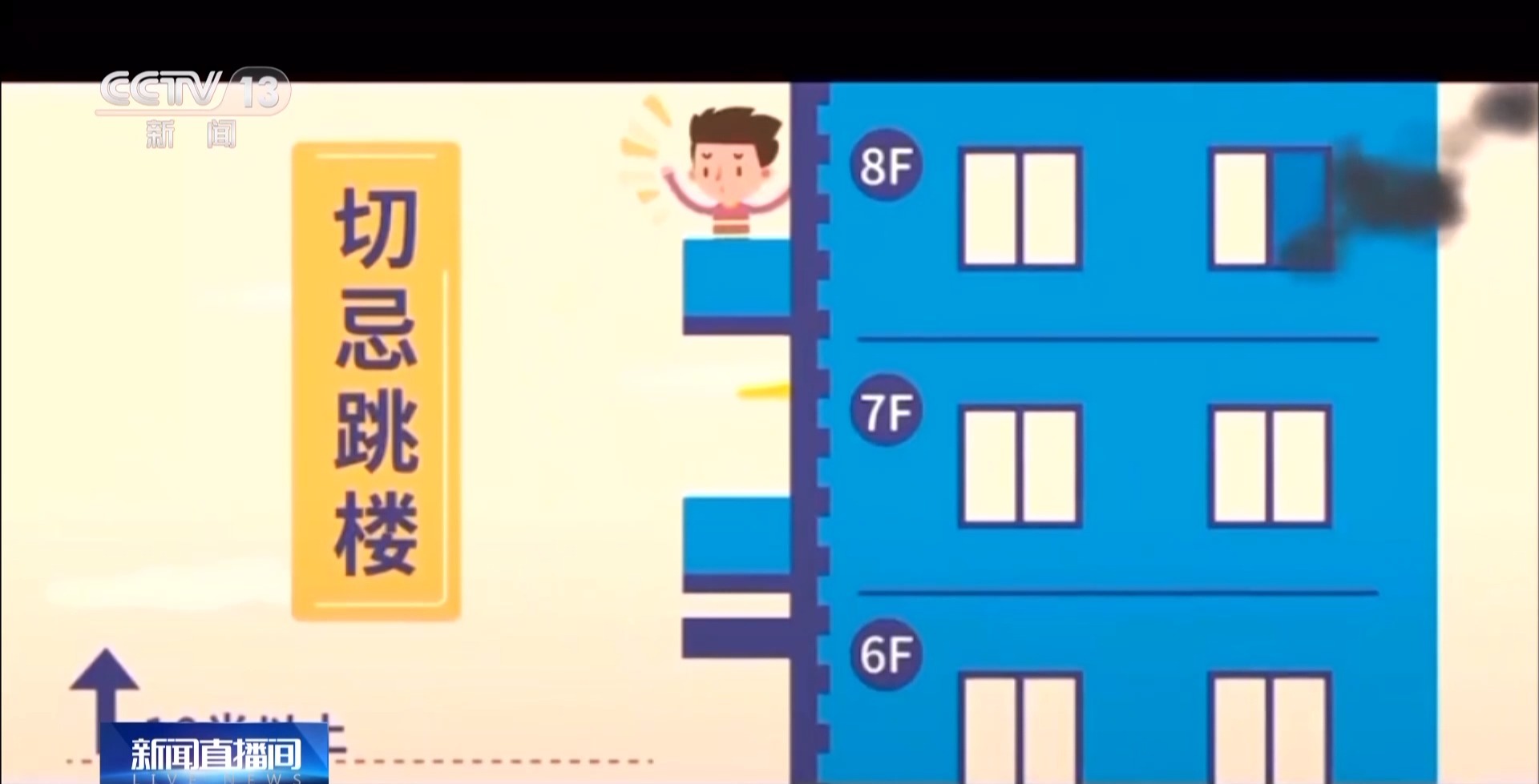 居住在二三层,必须跳下才能自救时,可以向地面抛棉被等缓冲物,双手攀着窗台往下滑,尽量做到双脚先落地。十米以上高处跳下生还希望极小,所以高楼火灾切忌跳楼,除非救援人员已做好救援准备。当然,高楼火灾预防最重要,不管是熟悉或是陌生的高楼,平时都要留意建筑物的安全出口、疏散通道和楼梯位置。