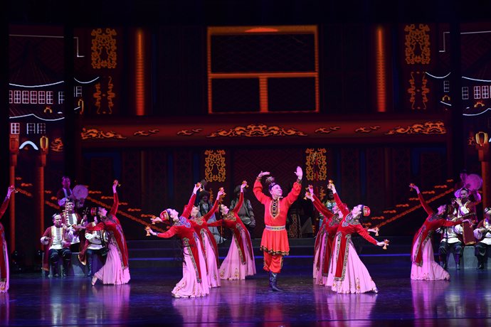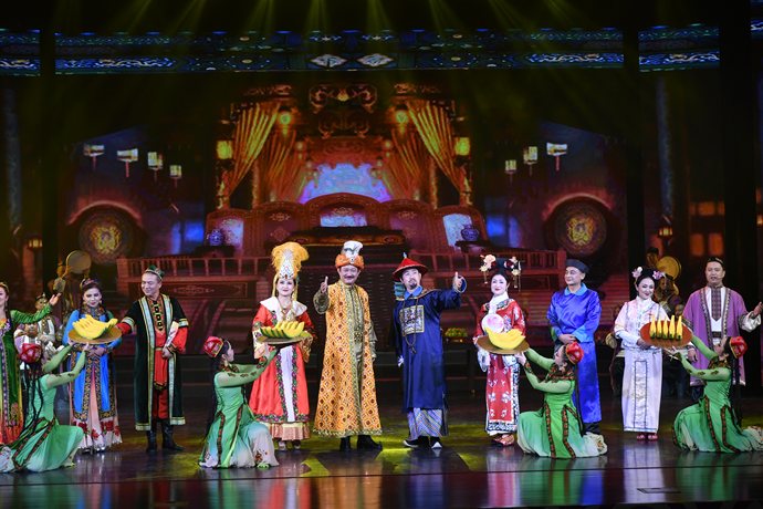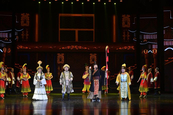 哈密歌舞团团长阿依仙木介绍,新疆和中原地区的文化交流和融合,是一种深深的文化认同和情感纽带。而《伊州印象》这部剧融合了新疆各民族歌舞艺术和中原文化元素,通过歌舞、音乐、戏剧等多种艺术形式,展现了哈密的历史、文化和人民生活,同时也向观众展示了援疆工作所带来的变化和发展。