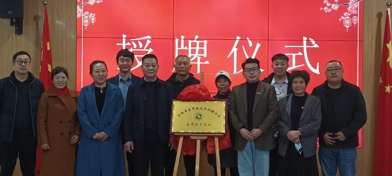 大河网讯 11月22日下午,“省直开放大学秋雅社区老年教育基地”揭牌暨老年教育开班仪式在秋雅社区党群服务中心举行,省直开放大学校长王荣献、副校长王广江、沟赵办事处人大工委主任边峰、秋雅社区党支部书记赵春艳、省直开放大学经济专修学习中心负责人郭坤鹏出席。