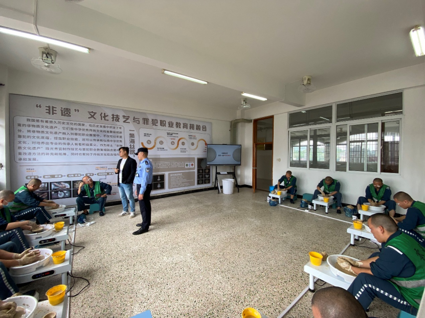 非物质文化遗产是中华优秀传统文化的重要组成部分,传承非物质文化遗产是每个中华儿女的责任,在监狱服刑的罪犯亦然。在监狱的特殊环境下将非物质文化遗产传承和罪犯职业教育有机融合,在教育改造工作方面起到了积极的作用。通过服刑人员反复习练“珠光青瓷”非遗技艺,创作出成果也成为本次活动的重头内容。