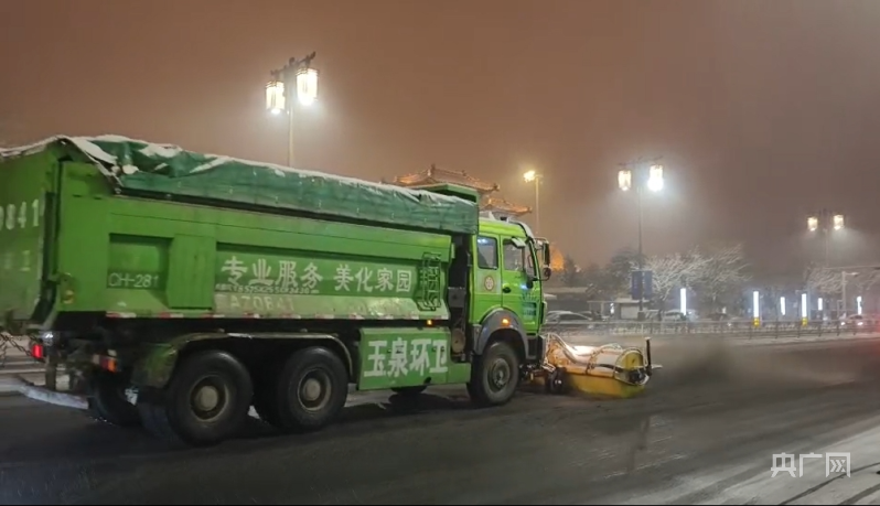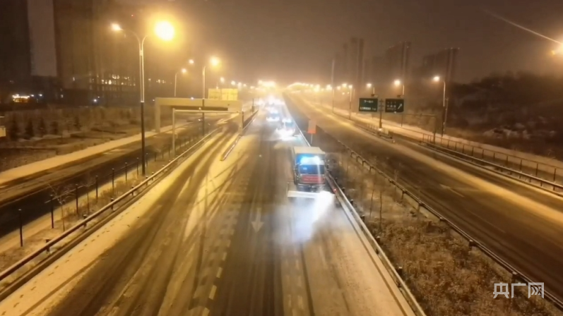 12月10日晚,清雪除冰车辆进行路面保障(央广网发 呼和浩特市城市管理综合执法局供图)