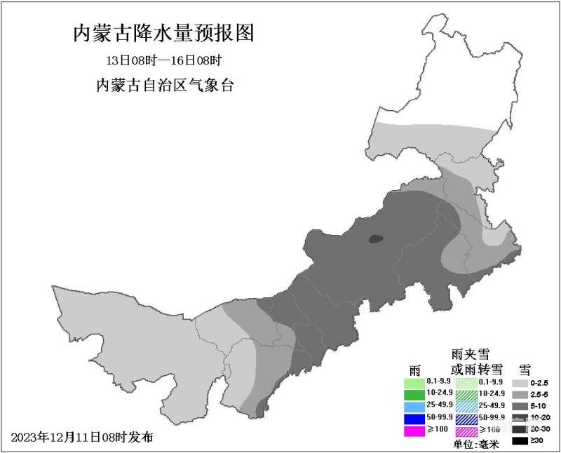 2023年12月13日08时至16日08时降雪预报(央广网发 内蒙古自治区气象局供图)