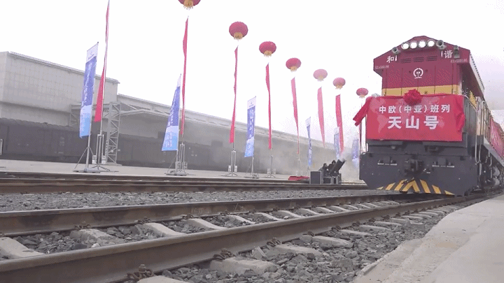 12月2日,新疆自有品牌班列——中欧(中亚)“天山号”班列缓缓从中欧中亚班列(乌鲁木齐)集结中心鸣笛启程,驶向哈萨克斯坦和乌兹别克斯坦。