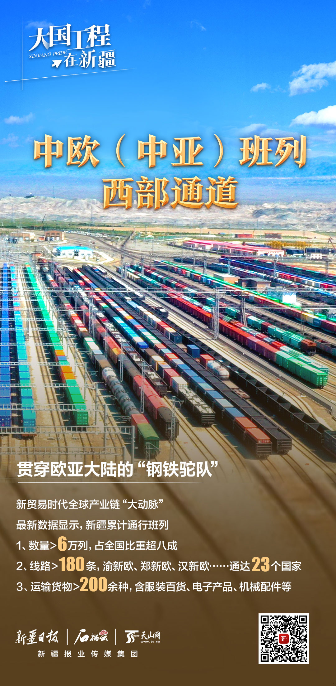 共建“一带一路”,新疆发挥独特区位优势,高质量建设丝绸之路经济带核心区。这其中,新疆铁路里程增多,口岸基础完备、通关便利化水平逐步提高,为中欧(中亚)班列蓬勃发展提供最强“铁”动力。