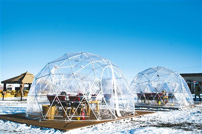“今年雪季到来前,我们就把营地的普通帐篷换成了可以供暖聚热、观赏室外景色的泡泡屋,准备迎接游客。”趣野文创园创始人周成告诉记者,即使室外气温低至零下十几度,泡泡屋内的气温也能保持在25度左右,游客不仅可以在屋内休闲,还可以眺望远处披挂雪甲的博格达峰风光。