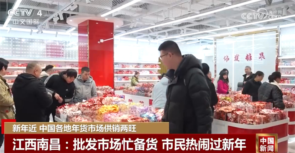 在江西南昌的这个批发市场,琳琅满目的商品摆满货架,糖果、干货也到了销量最好的时候。一大早,这里就迎来了前来购物的市民。
