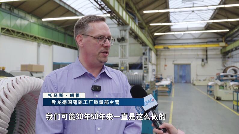 卧龙德国啸驰工厂质量部主管 托马斯·朗根:我们可能30年50年来一直是这么做的,中国的员工就会说,为什么要按照50年前的做法,我们依赖工人的能力,他们更依靠先进的设备。
