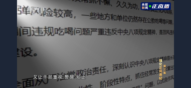 由中央纪委国家监委宣传部与中央广播电视总台央视联合摄制的年度反腐大片《持续发力纵深推进》,1月8日晚播出第三集《强化正风肃纪》。