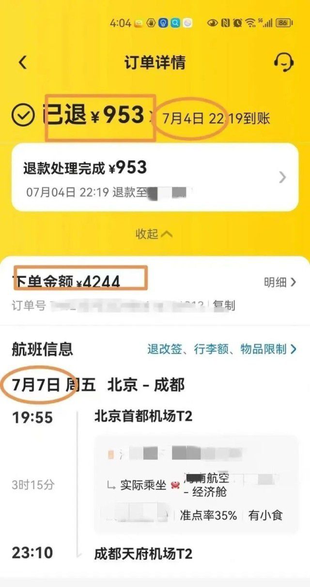 据此前报道,一网友称本计划一家三口出游,在购票平台购买了3张经济舱机票。起飞前72小时到48小时间,因天气原因计划有变,他在平台上申请退票,不料总花费为4244元的机票钱,却只收到了934元的退款,这让他大为吃惊。“机票在3天内完全可以再售出,航空公司什么也没做就扣掉了3310元,实在太离谱。”