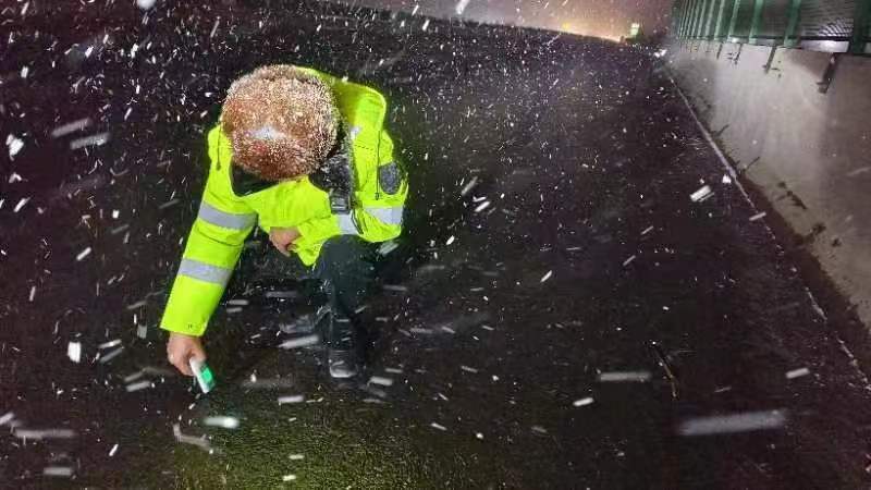 二是及时开展雨雪恶劣天气特殊巡查,公司养护部门全员在岗,各日常养护项目部加强巡查频率,时刻关注高速公路主线地表温度,对发现的病害及时处治,全线开展融雪剂撒布作业,预防道路结冰。