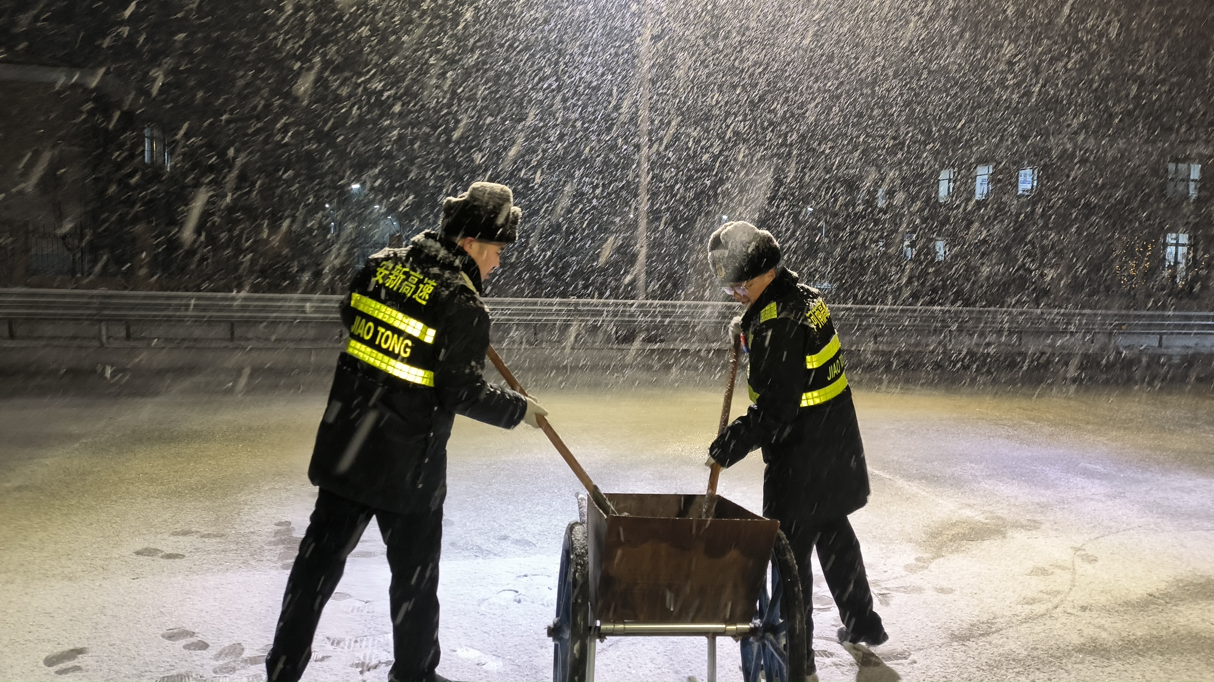 截至1月15日22时,安新分公司辖区中到大雪,已完成全线第一轮融雪剂撒布工作,共计投入除雪车辆9台班、人工58工日、融雪剂267吨,辖区道路畅通,整体路况良好,未出现结冰现象,道路积雪正在快速清理中。