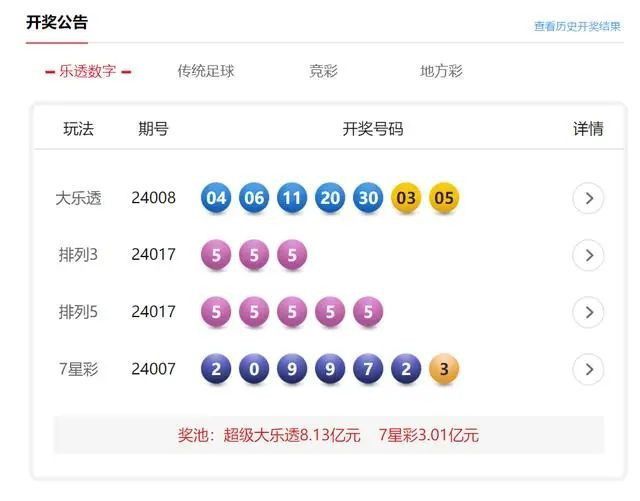 该期“排列5”全国销售金额23,056,924元,一等奖中奖注数井喷,有5966注,单注奖金84034元,应派奖金合计501,346,844元。该期开奖公告称:“0.00元奖金滚入下期奖池”,意味着奖池被清零。