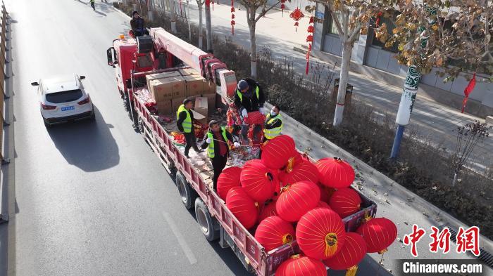 为喜迎春节,营造“年味儿”,阿图什城建局工作人员早早动工,为当地各个街道张灯结彩挂灯笼。张峰 摄