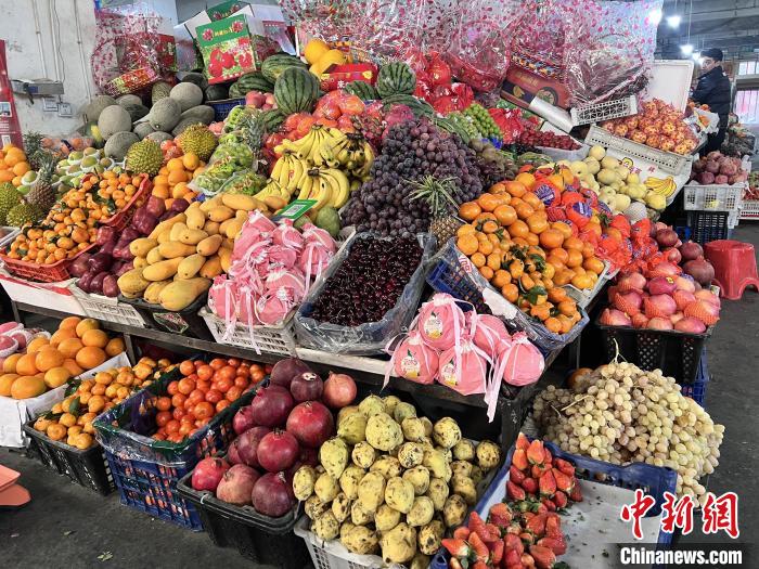来到当地知名的博格拉农贸市场,只见各类水果早已堆满货架,静待市民“置年货”。张峰 摄