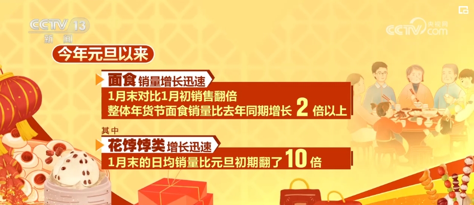 数据看消费:面食也是好买卖面食这样的传统食品,春节期间线上、线下销售非常火爆。