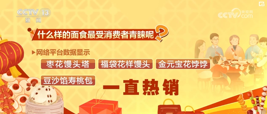 什么样的面食最受消费者青睐?网络平台数据显示,寓意着“步步登高”的枣花馒头塔、福袋花样馒头、金元宝花饽饽还有豆沙馅寿桃包一直热销。