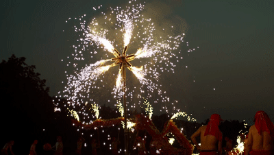 龙王回头(打铁花):这是表演中最令人期待的环节。