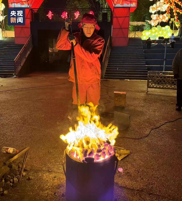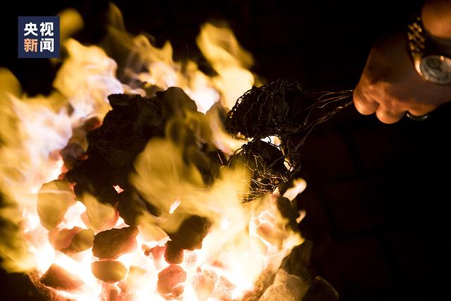 △表演前,朱华伟在烧铁水。
