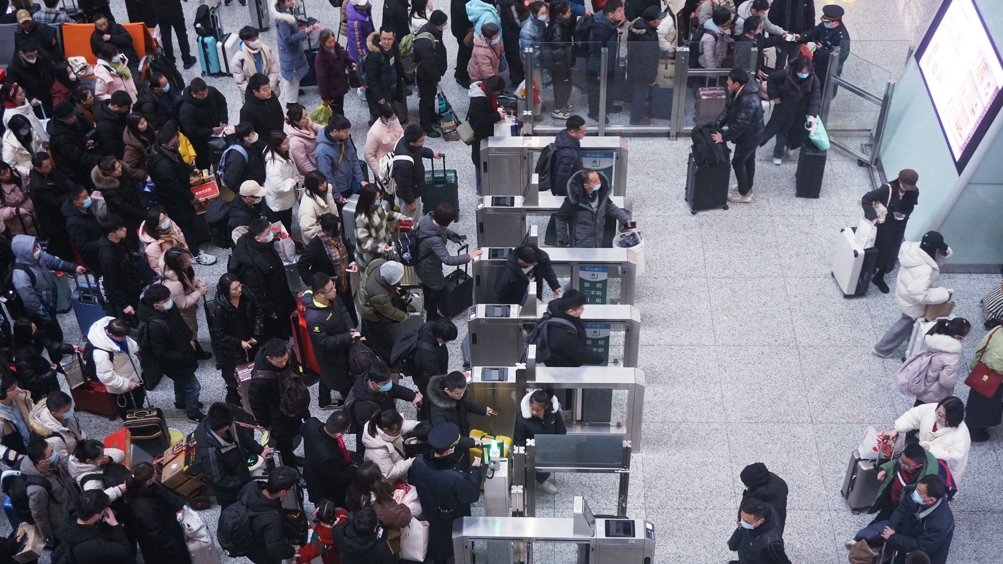 2024年2月17日,大批旅客在铁路杭州东站候车大厅候车。