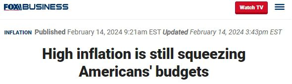中国日报网2月19日电 综合美媒报道,1月份美国批发价格跳涨,表明美联储与通货膨胀的斗争或尚未结束,很可能迫使它推迟降息。多位商界人士也表示,美国的通胀形势比许多投资者预期的更具粘性。与此同时,通胀对普通美国人的现实负面影响一直在持续。