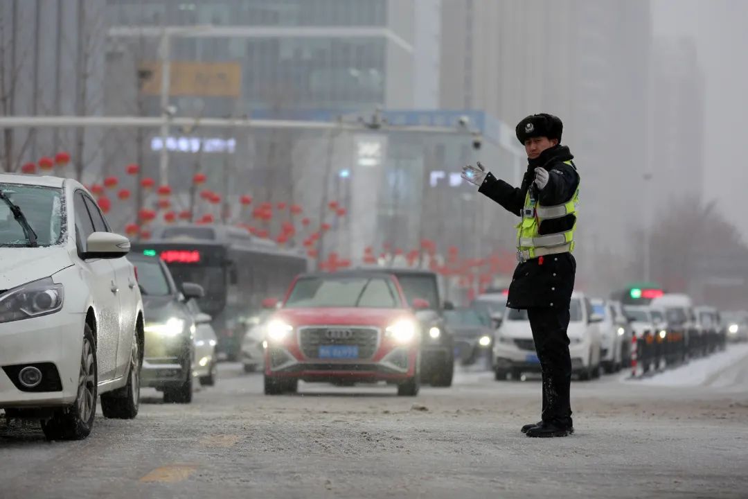 如遇道路结冰,驾车出行需牢记“慢”和“缓”字诀,降低交通事故风险。