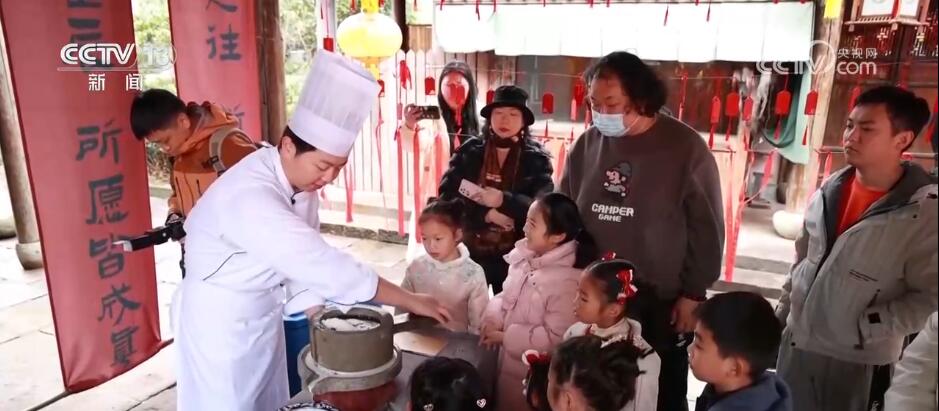 在浙江宁波,一群小朋友们对一台老底子石磨兴趣十足,他们在现场工作人员的指点下,撸起袖子跃跃欲试地开始包汤圆。