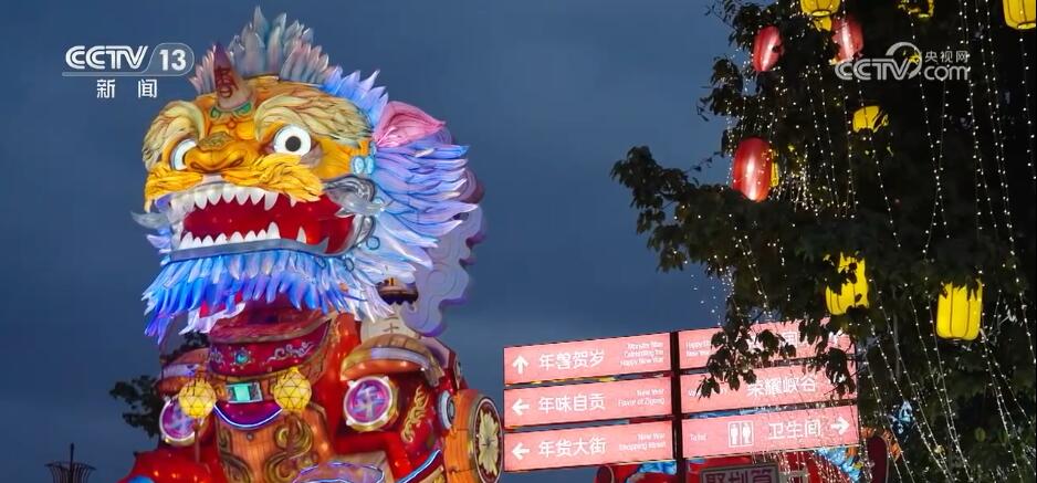 正在与游客对话的是一位AI小“年兽”,而在他们旁边,眼前这个高12米、重达10吨的“年兽贺岁”灯组就是AI小“年兽”的实体,它有一双LED的大眼睛,手脚灵活摆动,搭配上雾森及光影系统,沉浸式氛围感十足。在四川自贡的国际恐龙灯会上,这个全国首个AI智能灯组“年兽贺岁” 凭借交互性与娱乐性为“天下第一灯”再添“黑科技”。