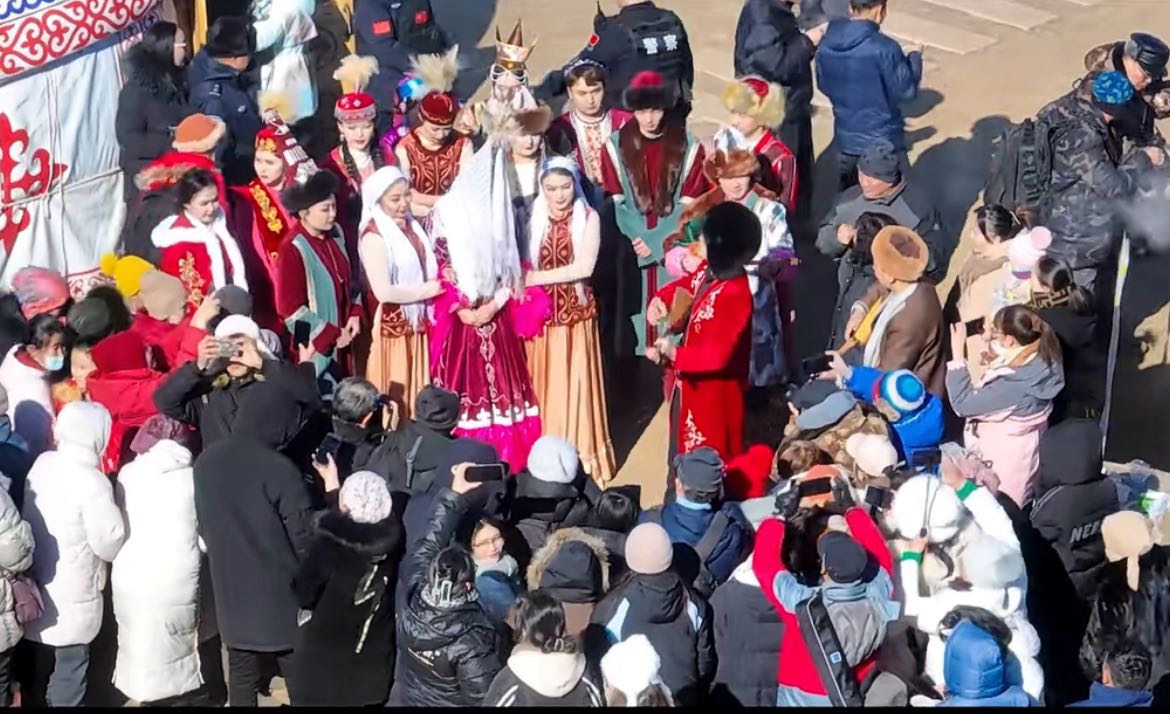赏石城冬韵,品萨吾尔味道。在祖国北部边陲的新疆吉木乃县,神奇的石城在诉说“新疆第一缕炊烟”的故事,萨吾尔山是北疆最优冬季牧场,这里水草充足、气候适宜,古老的游牧文化在这里登上舞台闪耀出新光彩。2月23日,2024年新疆吉木乃县第五届萨吾尔冬牧文化旅游节暨第四届萨吾尔大锅羊肉节在新疆吉木乃县萨吾尔山开幕。随着欢快的鼓点和轻盈的节拍响起,独具特色的民族歌舞和非遗传承节目等陆续亮相,为观众们呈现了一场精彩绝伦的民俗文化盛宴。