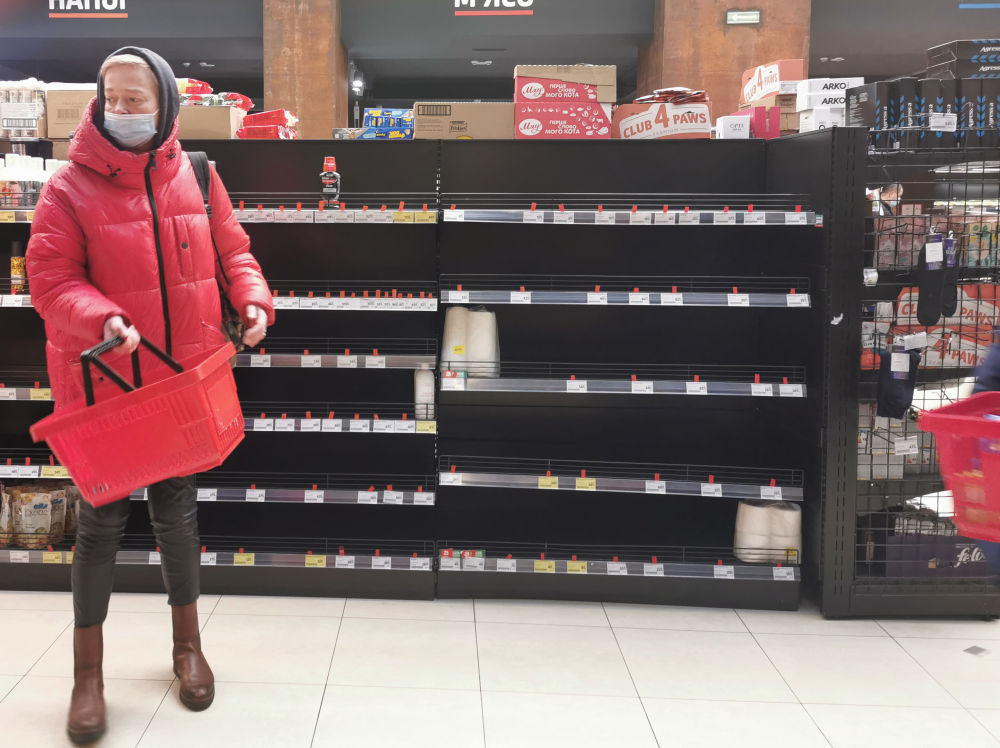 2022年2月28日,市民在乌克兰利沃夫一处超市内采购。新华社记者 陈文仙 摄