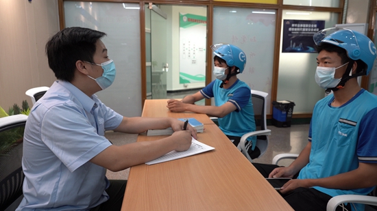 广州荔湾区新业态劳动争议调解中心工作人员正在接访。荔湾区人社局供图