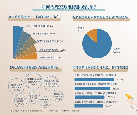 调查显示,86.8%的受访者呼吁加强对家政维修服务行业的治理。