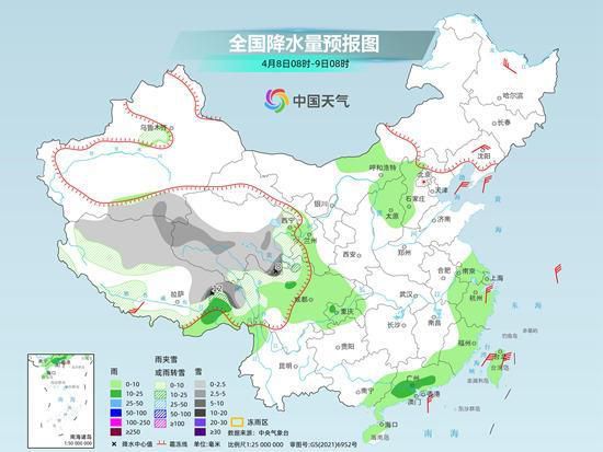 预计今天(4月8日),江南、华南等地降雨将明显减少减弱,迎来降雨间歇期。但在青藏高原中东部,未来三天仍将出现持续性雨雪天气。此外,今明两天,东北、华北等地在冷空气以及降水的影响下,气温将普遍下降。冷空气过后,上述地区气温又会快速回升。